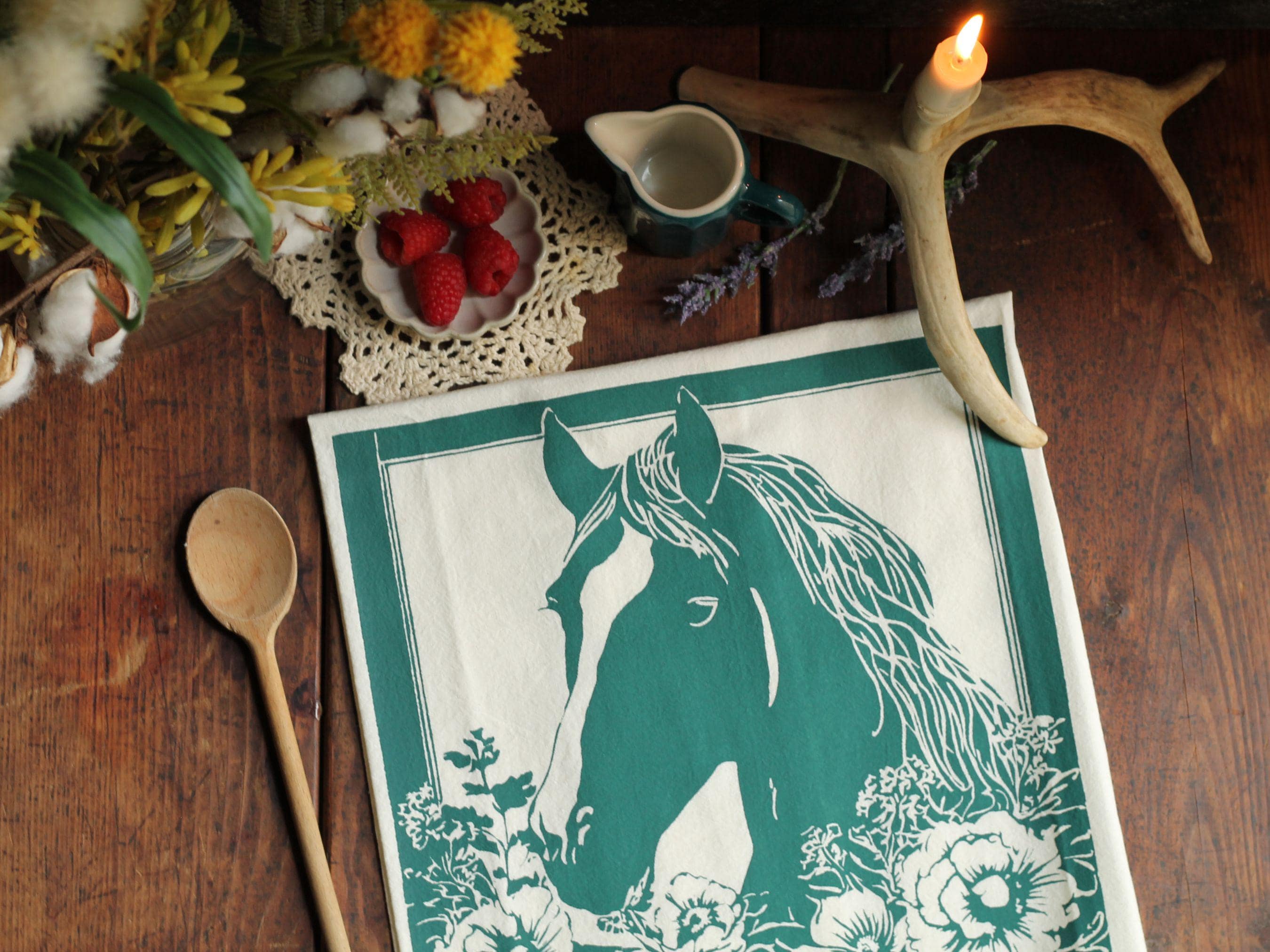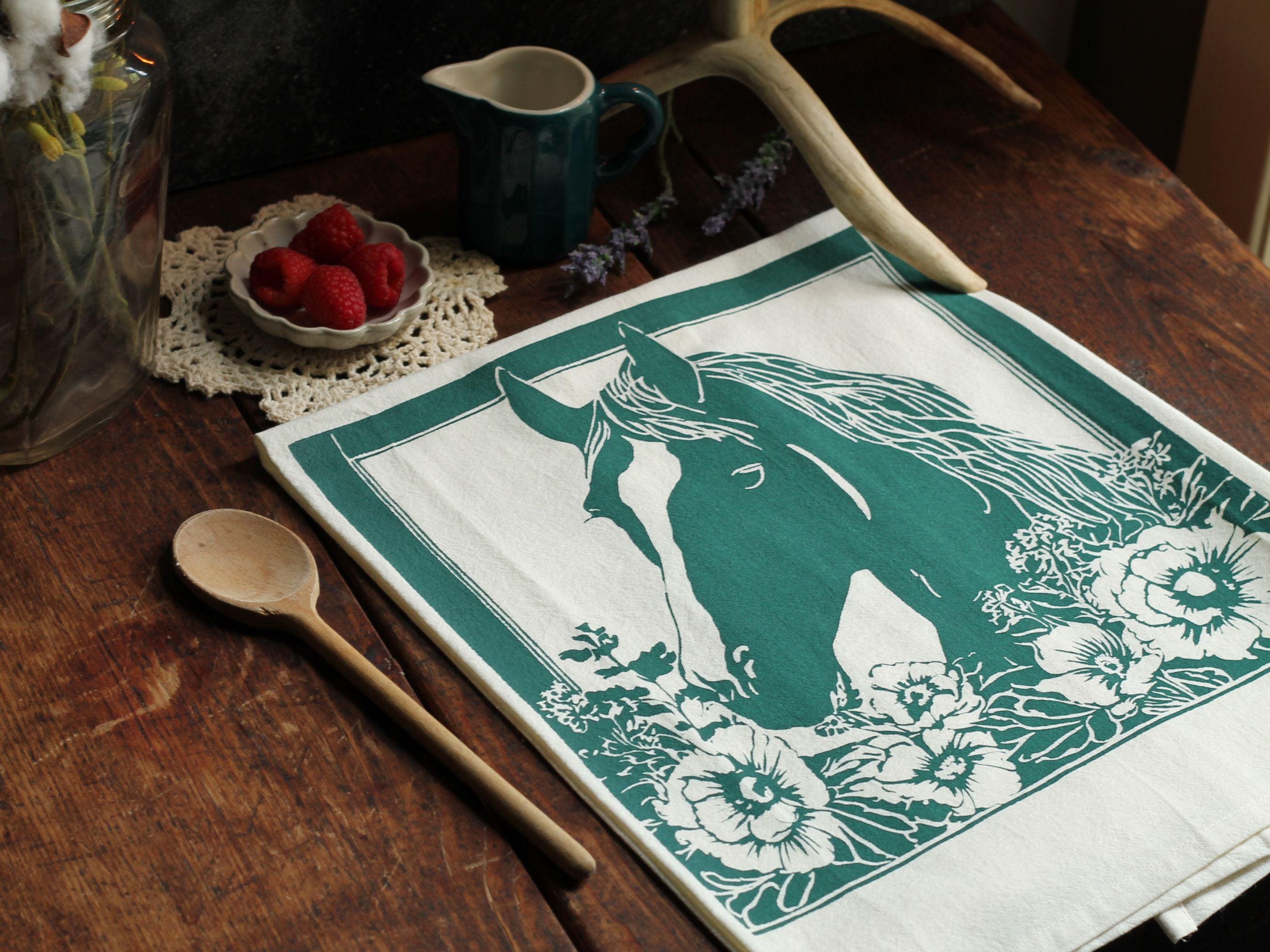 Horse Tea Towel, Farmhouse Tea Towel, Printed Tea Towel, Horse Kitchen Towel, Screen Printed Tea Towel, Modern Tea Towel, Flour sack Tea Towel, Spring Decor, House warming gift