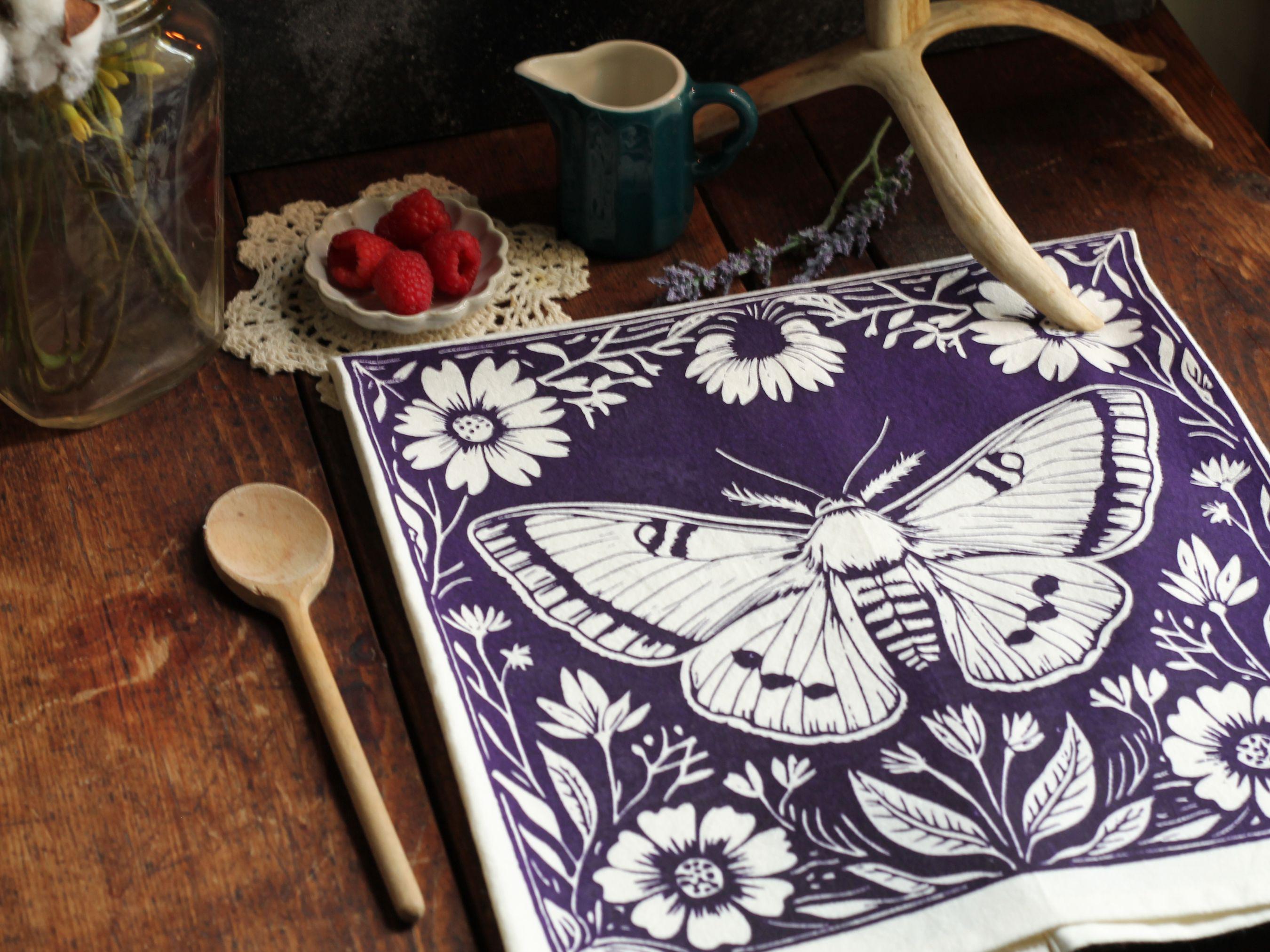 This luna moth-inspired tea towel is as functional as it is beautiful. Whether drying dishes, wrapping fresh bread, or brightening up your kitchen wall, it’s a piece that brings practicality and artistry together.