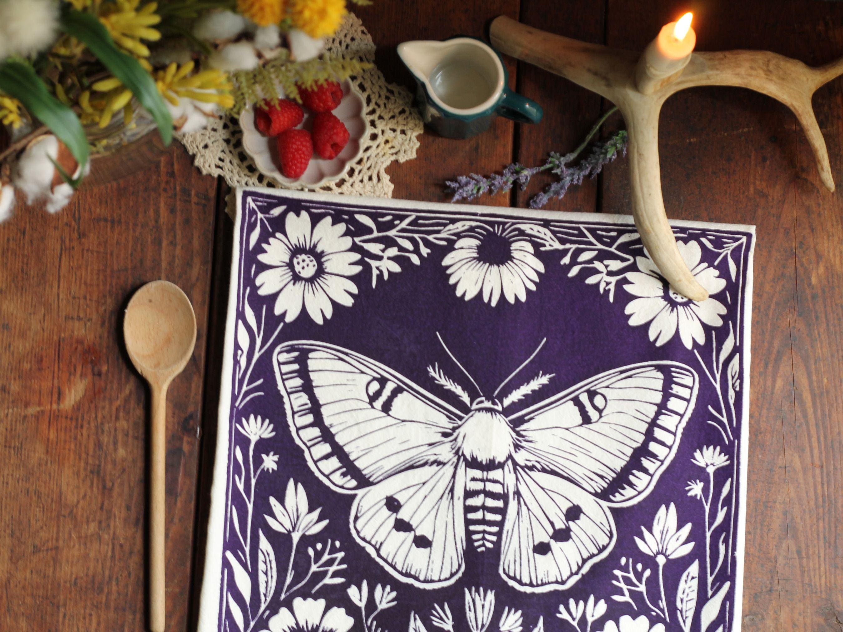 Bring a touch of autumn magic into your kitchen with this hand-printed moth tea towel — a perfect blend of Halloween kitchen decor and timeless cottagecore charm. Featuring a detailed moth design inspired by nature, this towel makes your space feel warm, cozy, and a little bit witchy.