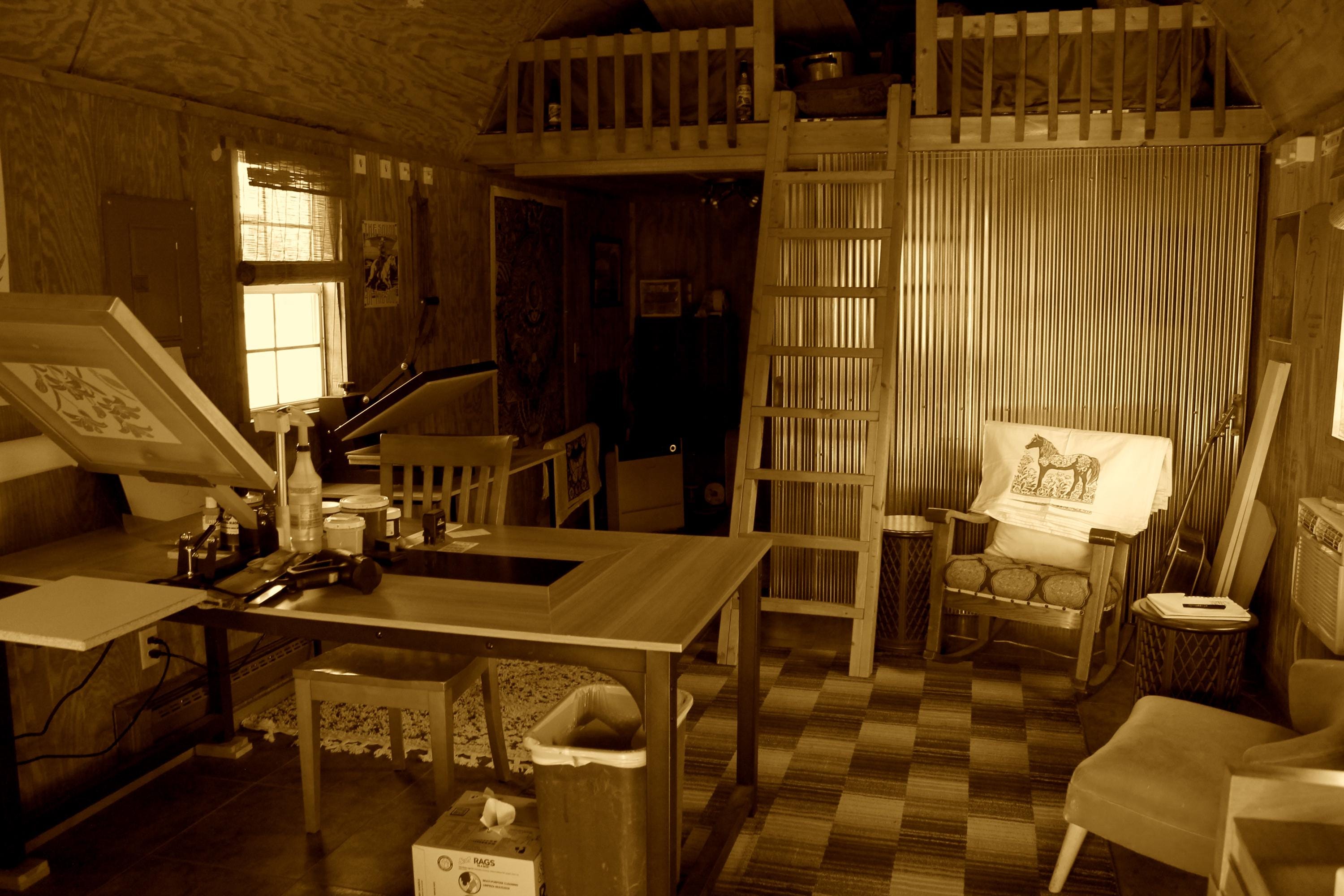 Next comes one of my favorite steps: preparing the silk screen. I coat the screen with a special light-sensitive emulsion, let it dry, and then carefully place the film with the design over it. When exposed to light, the emulsion hardens everywhere except where the design blocks it, leaving the image “burned” into the screen like a stencil made of light.